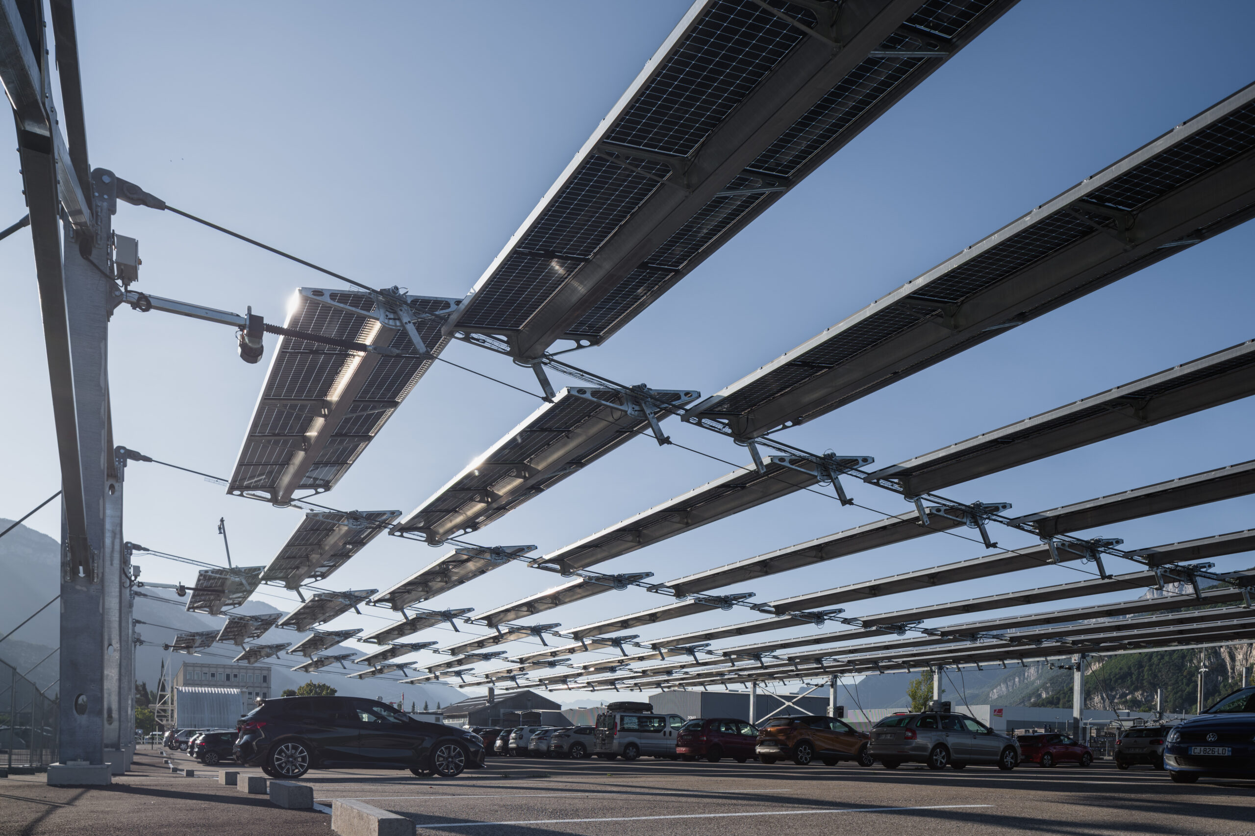 Construction d'ombrières photovoltaïques selon le procédé novateur Poma Sol R Way
